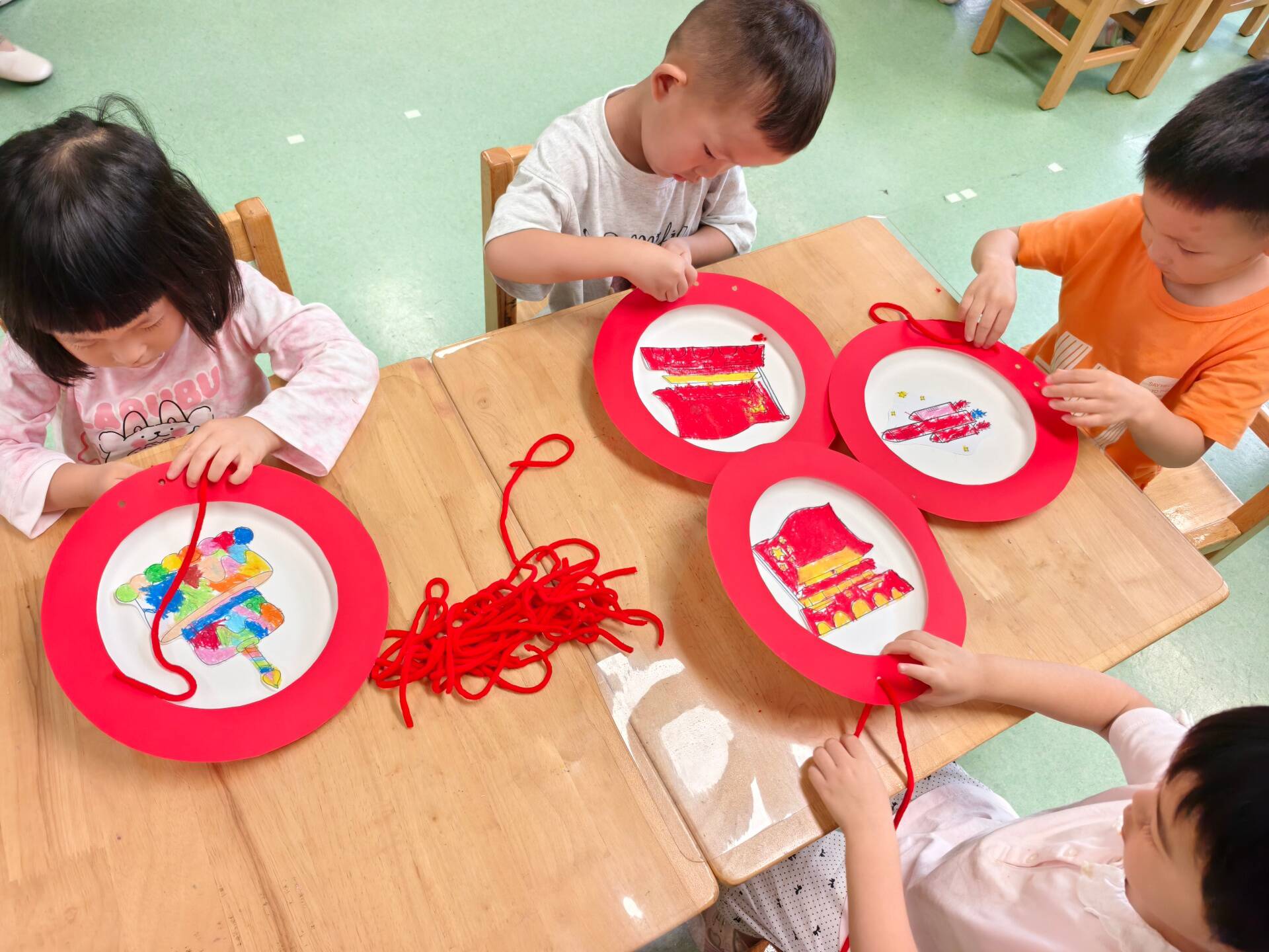 为了让孩子们感受中秋与国庆“双节”氛围,传承节日文化,幼儿园开展喜迎双节手工活动。活动中,孩子们变身“民俗小匠人”,围绕双节主题,用彩纸、颜料、红绳等材料,开启创意之旅。