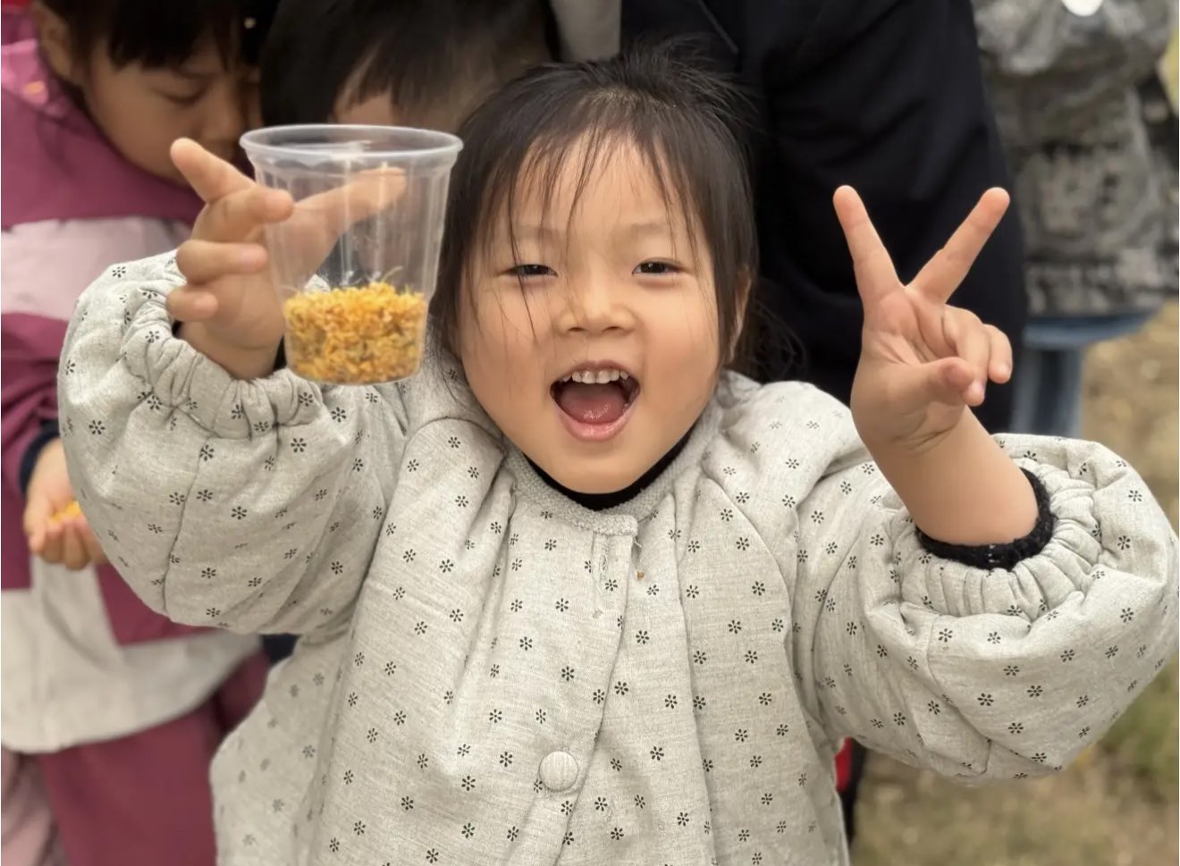 最后,每个孩子都捧着满杯桂香站在阳光下,沾了花屑的小脸蛋仰起来,连睫毛上都坠着细碎的甜。有人说要把杯子藏进书包,“让教室也变成桂花味的”;有人把鼻尖贴在杯壁上,小声跟桂花说“我们做朋友吧”。