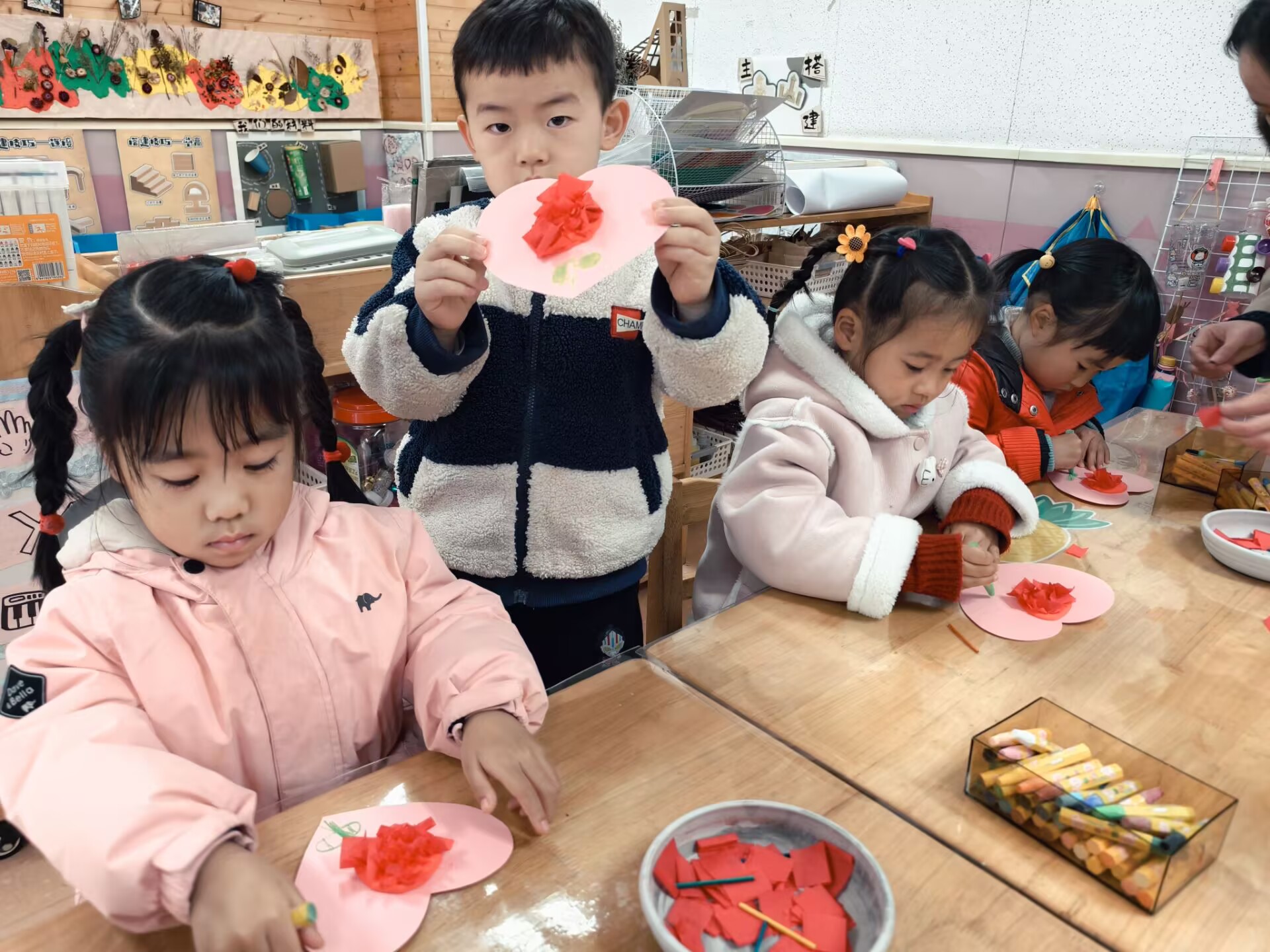虽然小手还不够灵活,但每一个动作都充满认真,每一次尝试都饱含心意。他们睁着圆圆的眼睛,努力把小花做得更漂亮,嘴里还轻声说着:“我要把最美的花送给妈妈。”