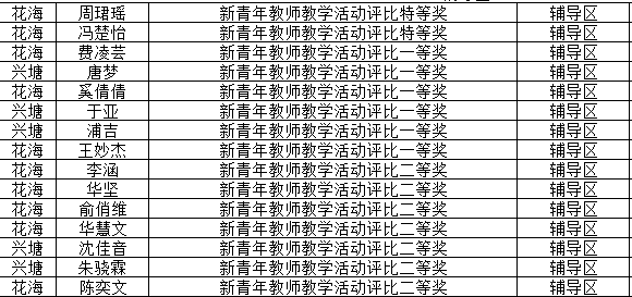 2026春学期辅导区新青年教师教学活动评比情况