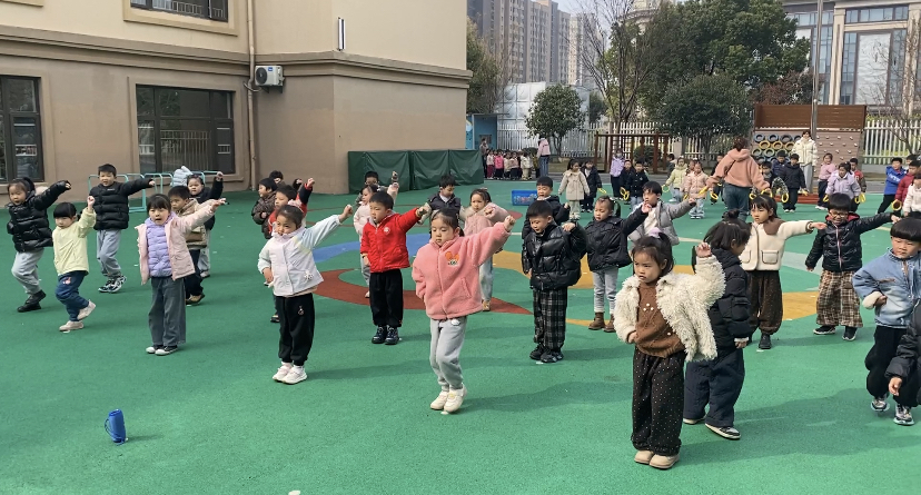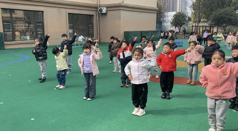 中班幼儿学啦啦操的场景热闹又暖心。啦啦操活力四射的节奏一响起,孩子们就跟着老师蹦蹦跳跳,可看似简单的站姿、走姿却难住了大家:有的弯腰驼背像小虾米,有的左右摇晃站不稳,有的走路拖沓没精神。为了让孩子们理解“傲娇姿态”的重要性,老师带大家观看啦啦操比赛视频,视频里哥哥姐姐挺拔的身姿、自信的笑容,让孩子们眼睛亮闪闪的。“我也要像他们一样抬头挺胸!”孩子们纷纷说道。之后的练习中,老师用“头顶小贴纸”“后背贴星星”的小游戏帮大家找感觉,一遍遍纠正站姿:双脚并拢、膝盖伸直、挺胸收腹、下巴微抬。走姿练习时,孩子们跟着节拍一步步踏稳,从跌跌撞撞到整齐有序,汗水浸湿了小额头却没人叫苦。现在,每当音乐响起,孩子们就会立刻挺直小身板,挥舞着彩球,用稚嫩却有力的动作展现着啦啦操的动感与自信,每一个认真的小模样都充满了成长的力量。