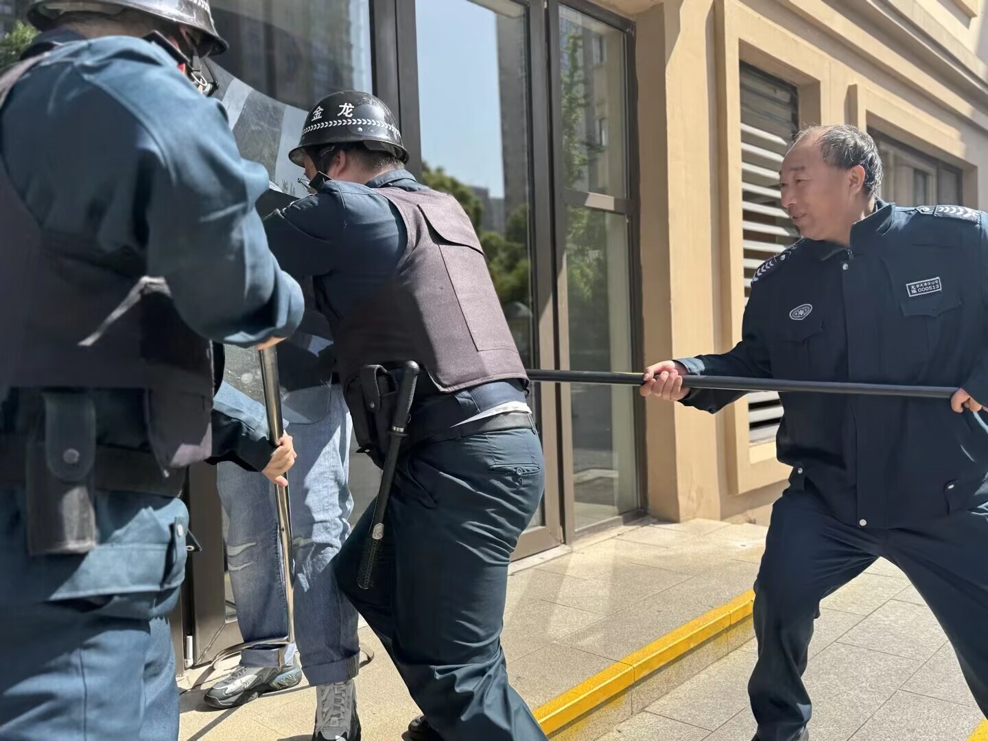 老师告诉我们,保安爷爷用的是防暴叉,能把坏人拦得牢牢的,不让他靠近我们;还有大大的盾牌,像一面安全墙,保护大家不被伤害。 等坏人被“打跑”后,老师还教我们,要听老师的指挥,有序地跟着老师转移,不能乱跑、不能哭闹,这样才不会和小伙伴走散。