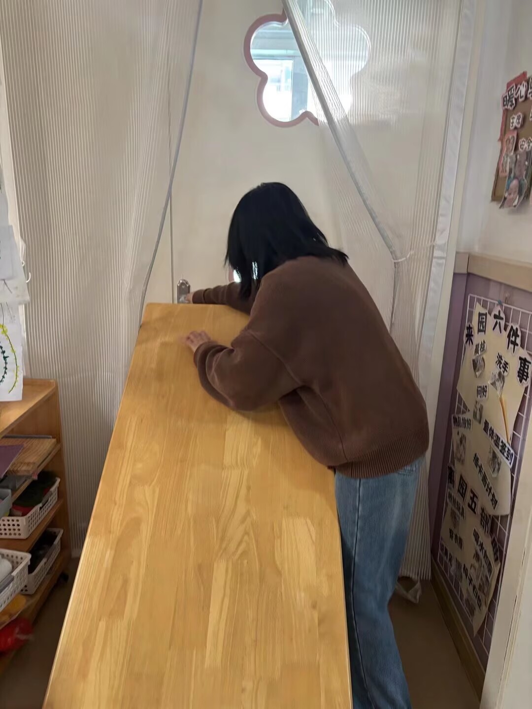 今天我们幼儿园超厉害的!来了“坏蛋”叔叔,我们和老师一起赶跑了他! 老师说,遇到坏人要记住三个“小魔法”:一要躲,二要藏,三要不说话。听到警报声,我们立刻用小胳膊抱着头,跟着老师躲到了桌子底下,紧紧捂住小嘴巴,连大气都不敢出!就像小蜗牛缩进壳里一样,安安静静的,这样坏人就找不到我们啦。 门口的保安爷爷和老师变成了“超人卫士”,他们拿着盾牌和警棍,把坏叔叔挡在了外面!